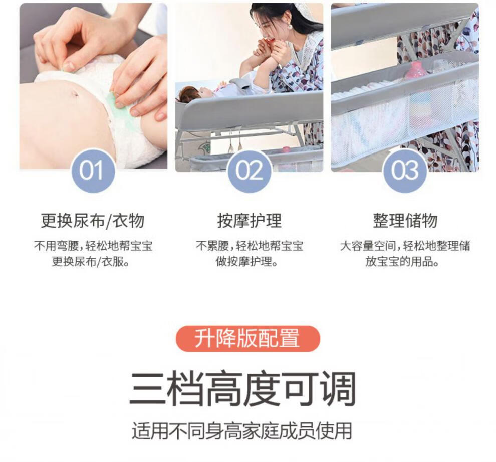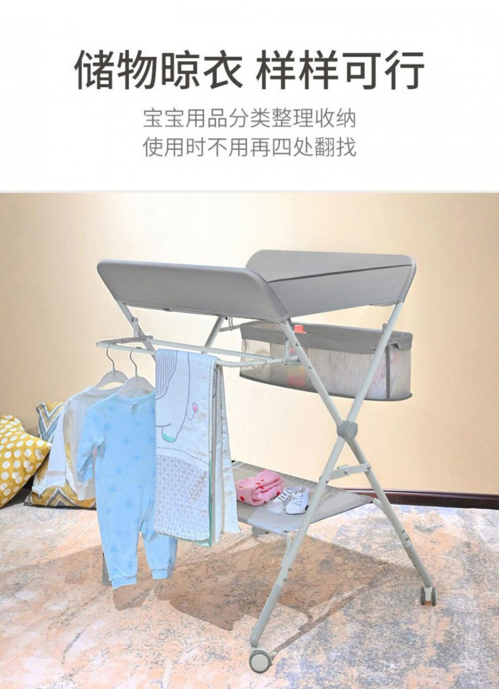 Babu Bean Changing Table Baby Changing Station Portable, Multi functional, Portable, Bathable, Convertible Crib Top Diaper Changing Baby Care Taiwan Blue (Storage Basket+Drying Rod+Storage)
