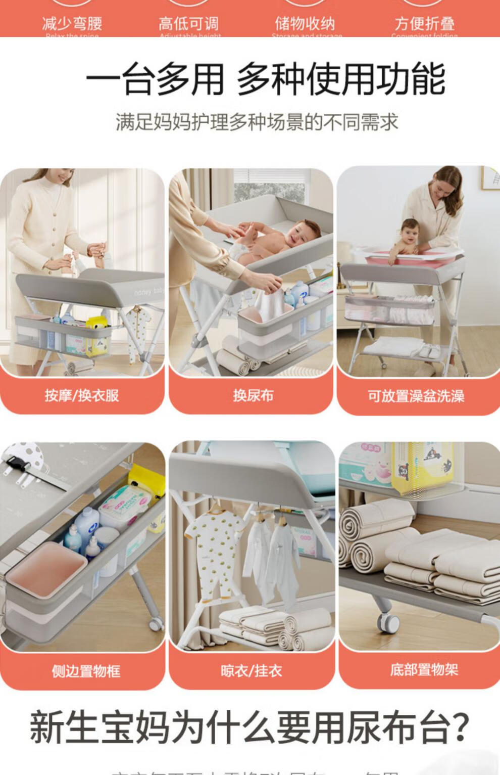 Babu Bean Changing Table Baby Changing Station Portable, Multi functional, Portable, Bathable, Convertible Crib Top Diaper Changing Baby Care Taiwan Blue (Storage Basket+Cloth Drying Rod+Storage Rack)